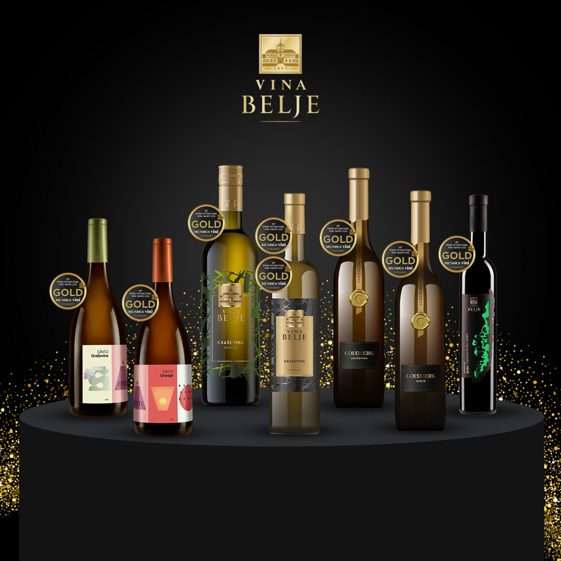 U velikoj konkurenciji, koju na „Mundus Vini – Spring Tasting“ čini više od 5.000 uzoraka vina iz svih krajeva svijeta, zlatne medalje su osvojili Goldberg White 2024., Goldberg Graševina 2024., select Graševina Vina Belje 2025., vrhunske Graševine Vina Belje berbe 2024. i berbe 2025., Jade izborna berba 2023. te dva vina iz linije Savoj, graševina i orange.